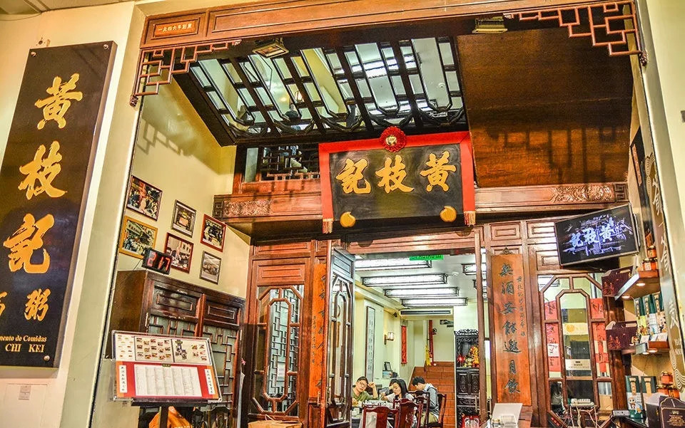 黄枝记是澳门的老字号粥面店,门面小小的,装修却古色古香,黄枝记在议事厅前地,市口相当好,需要排队。