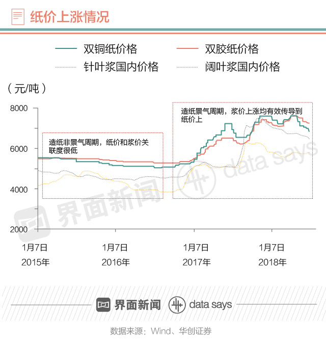 纸价之所以上涨,一是进口纸浆稀缺性不断上升,二是国家对造纸业的环保监管在加强,更高的环保标准使得纸企的生产成本提高。