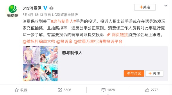 今年 5 月 4 日,《恋与制作人》上线「梦心湖」活动,有玩家反映游戏卡池概率出现波动,下午抽 SSR 的概率更高。