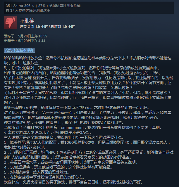 虽然单机游戏受评价影响大,steam 有「退款机制」,不讨玩家欢心的游戏甚至可能血本无归,但游戏官方的态度不同,同样性质的「被差评」也会走向截然不同的后果