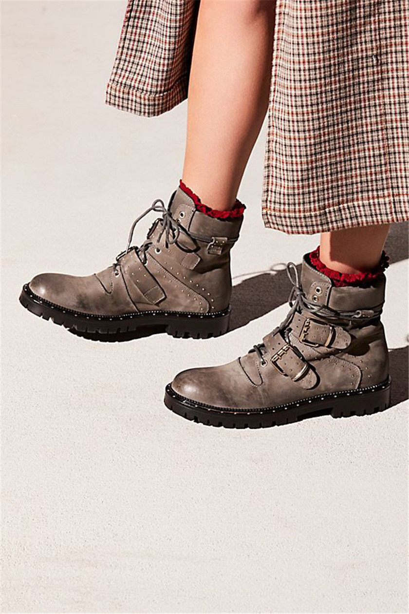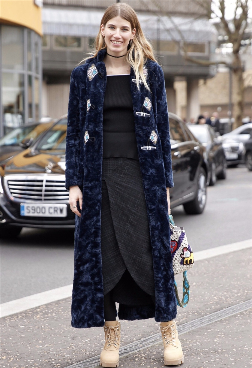 除此之外,长款登山靴也可以与马丁靴一样,搭配裙装。在这个时候,一些不对称的中长裙不规则裙边的裙子往往会更加的出彩。