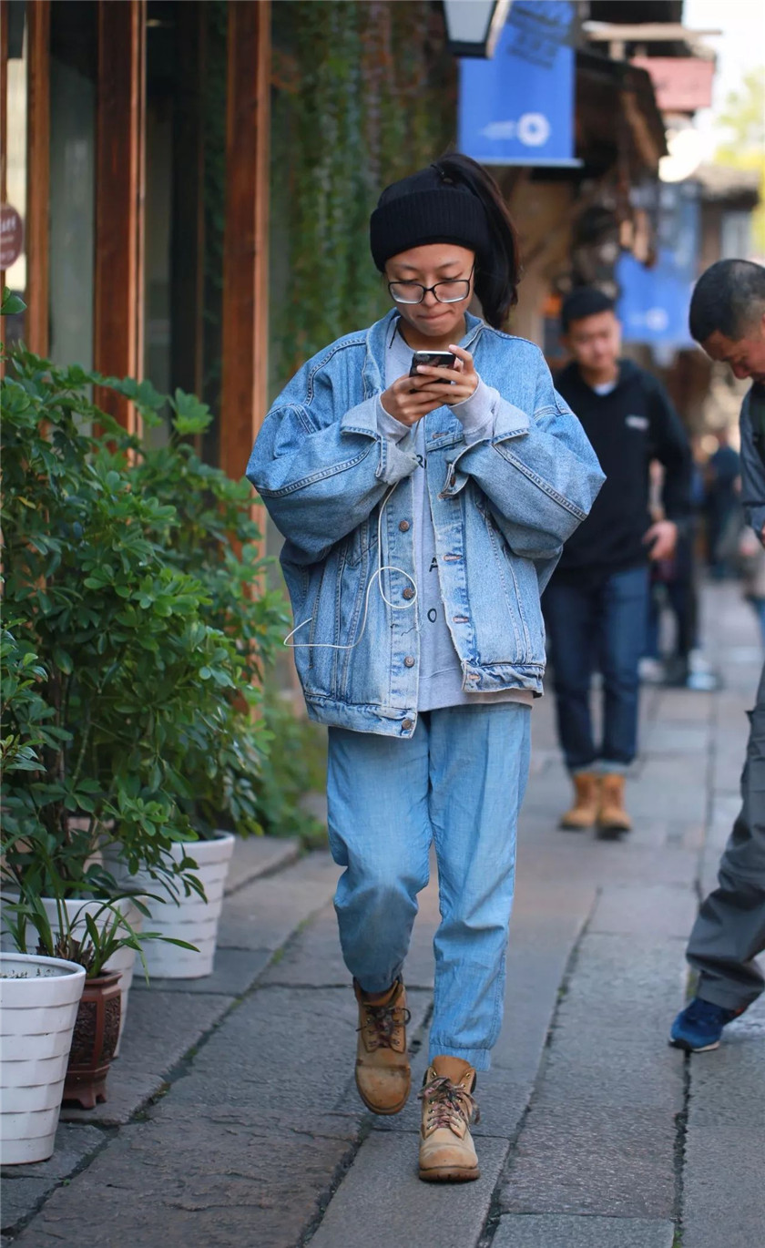 如果你想穿的更嘻哈一点,那可以选择小脚的阔腿牛仔裤。