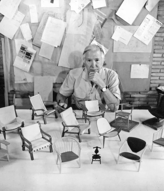 Finn Juhl ( 1912 - 1989 ),在设计领域,他的先锋性是很少人能够达到的,特别是他在自己的设计风格中明确划分了广泛的结构构件,增添了家具的张力和支撑力等元素。在他的家具作品中,刻画了契合的关系,从椅子的扶手和椅背中,可以看出这个微妙的关系。