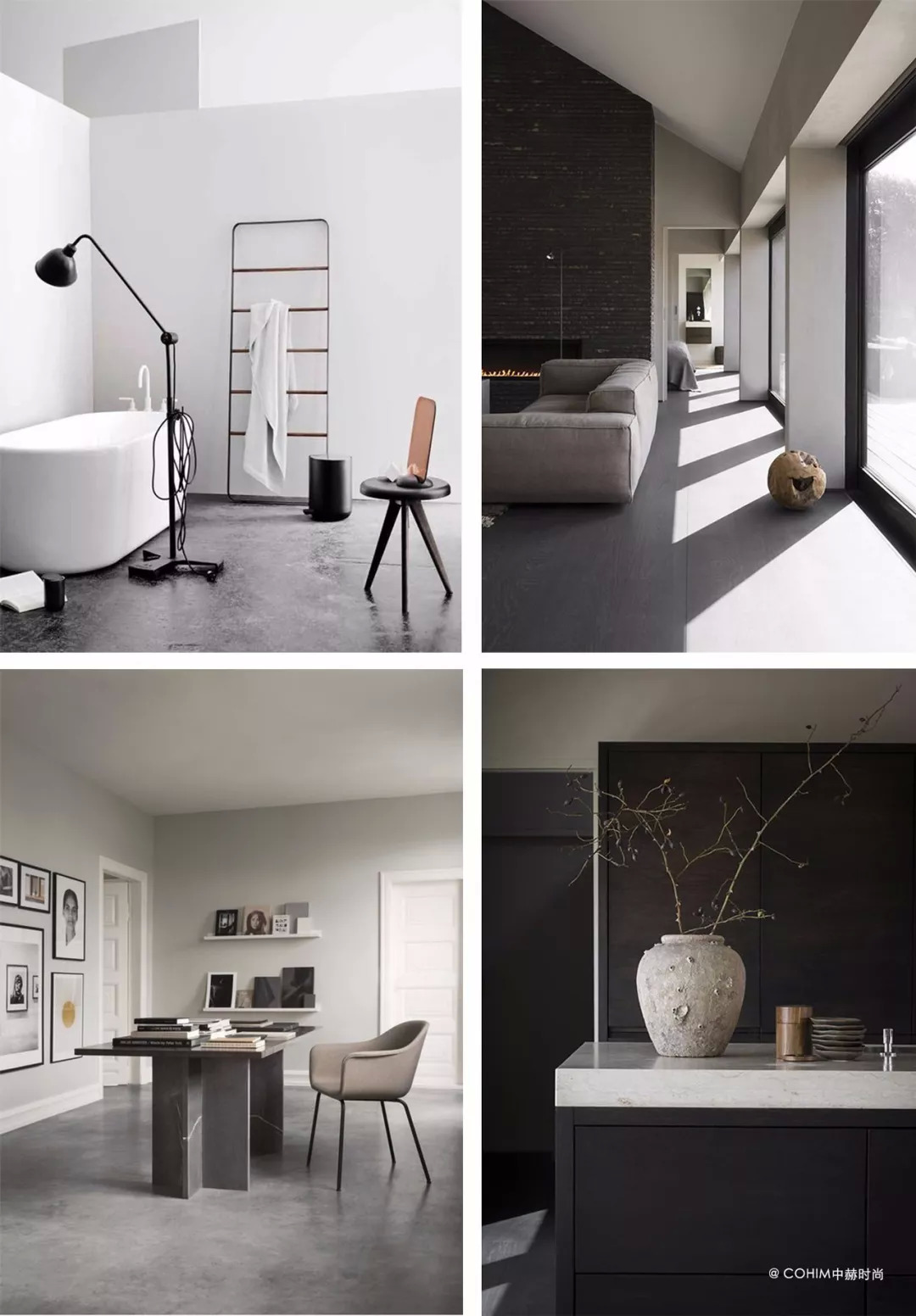比如,在极简主义的黑白色组合中,灰色、银色、米黄色等颜色可以调和整个设计空间的视觉效果;无印花、无图腾的整片色彩能够带来另一种低调的宁静感,沉稳和内敛,多层次不同材质的组合,充满设计感。