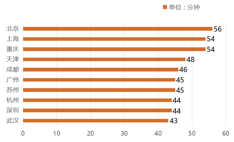 《2018年中国城市通勤报告》(以下简称《报告》)显示,北京的平均通勤距离和时间最长,平均通勤距离为13.2公里,平均通勤时间为56分钟。排在其后的城市为上海、重庆、天津和成都。而重庆的平均通勤距离达12.2公里,平均通勤时间为54分钟,通勤距离位列全国第三,仅次于北京和上海,通勤时间与上海并列全国第二。
