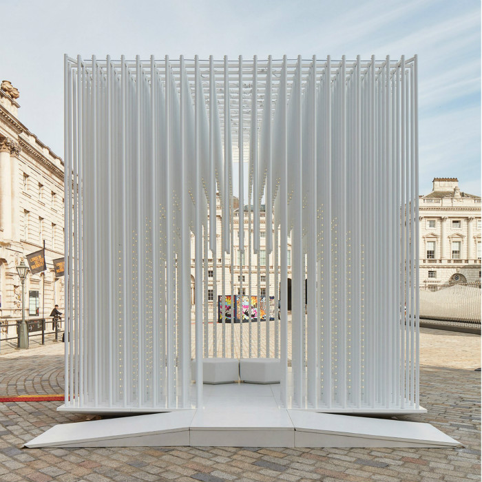 The Silent Room俯瞰泰晤士河,是一个无声的茧状结构,让游客可以从城市的喧嚣和无情的能量中得到喘息的机会。设计师Nathalie Harb去年在Beirut设计周安装了一个粉红色的Silent Room,但这是伦敦游客第一次享受隔离。