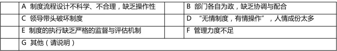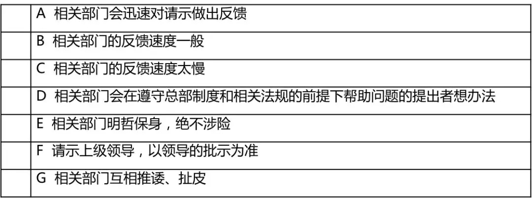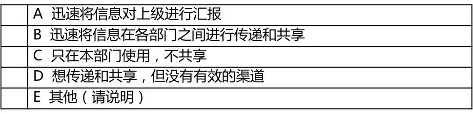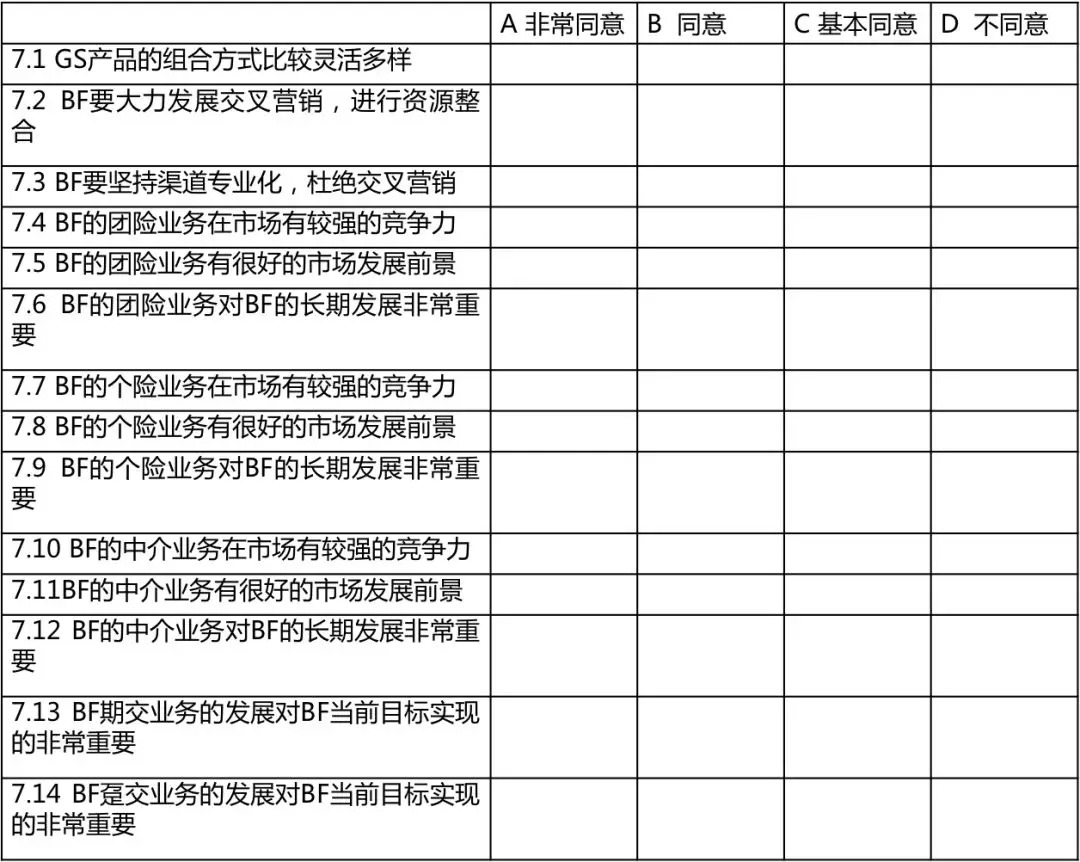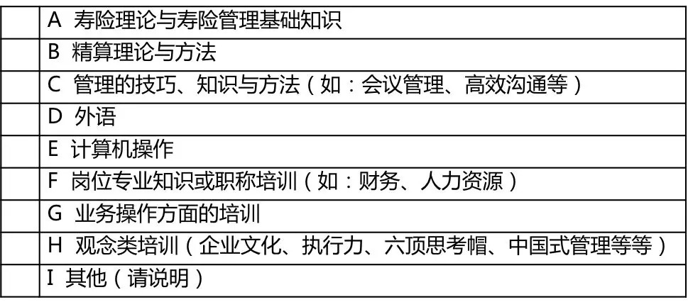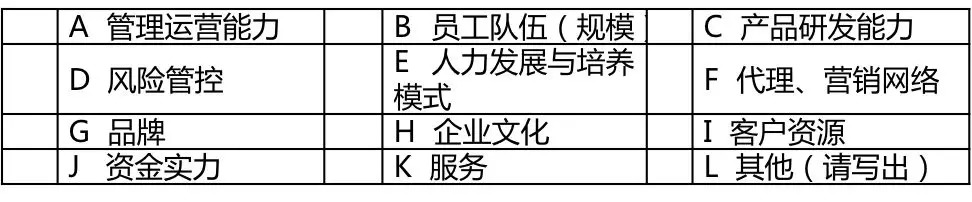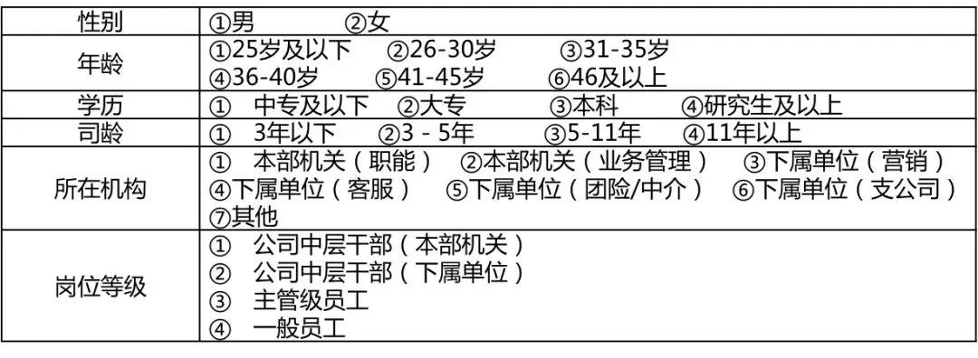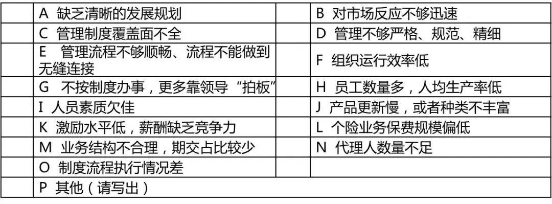 说明:案例为某寿险企业的省级分公司为对其综合管理现状进行评价而进行的调研问卷设计过程。在调研问卷设计过程中,首先明确了要通过问卷调查获取的信息,在此基础上完成了有针对性的题干和选项设计。