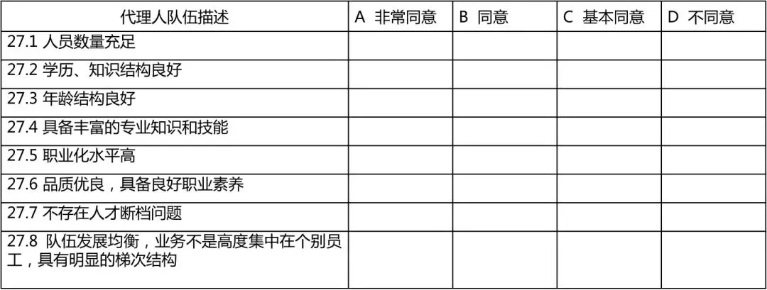 27,您如何看待BF代理人的队伍建设情况?(每行单选)