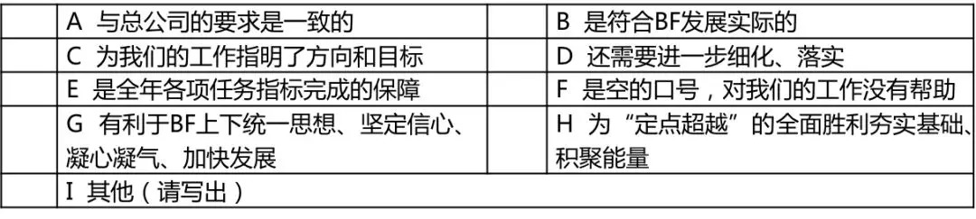 6,您如何看待BF“强基固本、整合转型、创新超越”的工作方针与“先赶后超”的竞争策略?(最多选择3项)