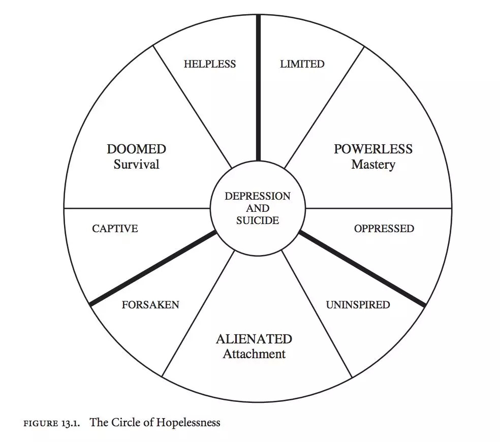 在这九种无望感之外,还有一种情况,就是“依恋”、“掌控”、“幸存”三种要素全部缺失,Anthony Scioli和Henry Biller没有对这种状态进行明确的命名,但他们指出这种状态与抑郁和自杀有紧密的联系。
