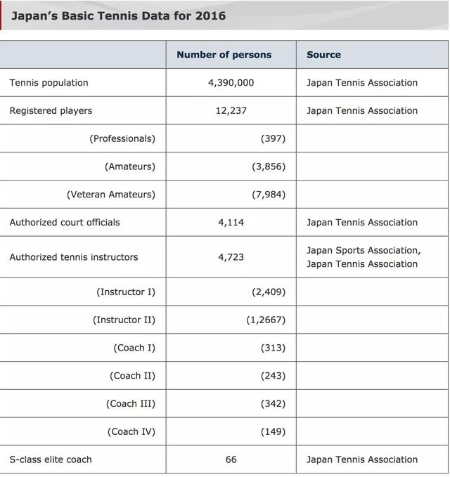 在这个连天皇夫妇都是因为网球结缘的国度,网球的群众基础可想而知,据统计,2016年底,日本的网球人口439万,约占人口的4%。虽然网球的流行程度不如棒球,但随着由锦织圭带领的众多日本选手的崛起,受欢迎程度一直呈现增长趋势。