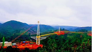 由于楚攀天然气管道需要跨越勐岗河,悬索跨越成为该管道的关键控制性工程。勐岗河地处云南省牟定县与大姚县交界处,两岸地形陡峻,桥面到河底落差达173.74米。因此,受地形条件限制,通过勐岗河的管道采用了“平行风索+风索支架+共轭索”抗风索系结构,抗风安全性高,跨越总长552米,位居全国第一。