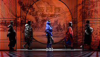 美东时间9月11号晚上,中国羽绒服品牌波司登在纽约时装周主场举办了主题为“牖”的新品发布会。“牖”这个生僻字是指开在墙壁上的窗户,为配合主题,波司登在秀场中造了一扇窗出来。窗外是中国山水画,这些水墨图案和牖字、龙等中国元素一同出现在了衣服上。