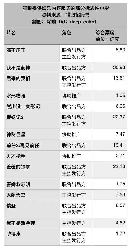 这几年,两位大亨借着“资本”和“在线宣发手段”,已经完全介入了上游内容生产投资的生意,罗列这几年的大卖影片,几乎每一部后面都会看到这两位相关的身影。
