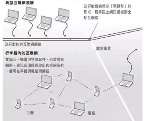 说白了,就是每个人拿个手提箱,就可以躲避政府的监察直接上网。据报道,为了这套系统,奥巴马政府投入了7000多万美金的研发经费,启动了“手提箱互联网”“边境手机”等十几个网络渗透项目。其中手提箱网络是整个影子网络的中枢。