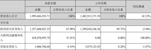 值得注意的是,2017年上半年财报中,巨人的游戏业务营收占比高达99.72%。2018年相比同期,看似已经将游戏业务的占比降低了不少(占比降至67.9%),但实际情况呢?其财报显示,上半年旺金金融为巨人网络贡献了6.38亿元的营收,占整体营业收入的31.91%。由于去年同期这一数据则为零,因此金融业务获得如此大的增幅是因为之前基数太小。另外,虽然金融业务的营收和整体占比尚可,但是今年上半年旺金金融的净利润只有2475.64万,仅占巨人网络净利润的3.48%。