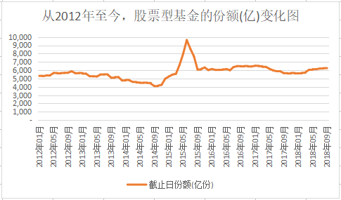 下面就以股票型基金从2012年至今,其基金份额的变化图为例。