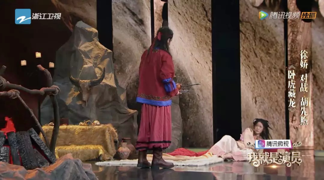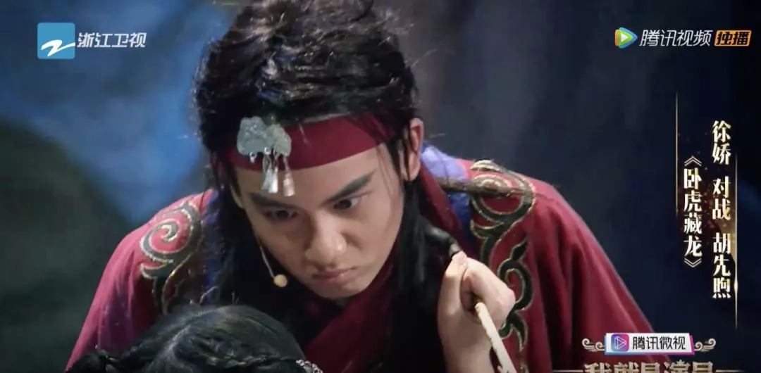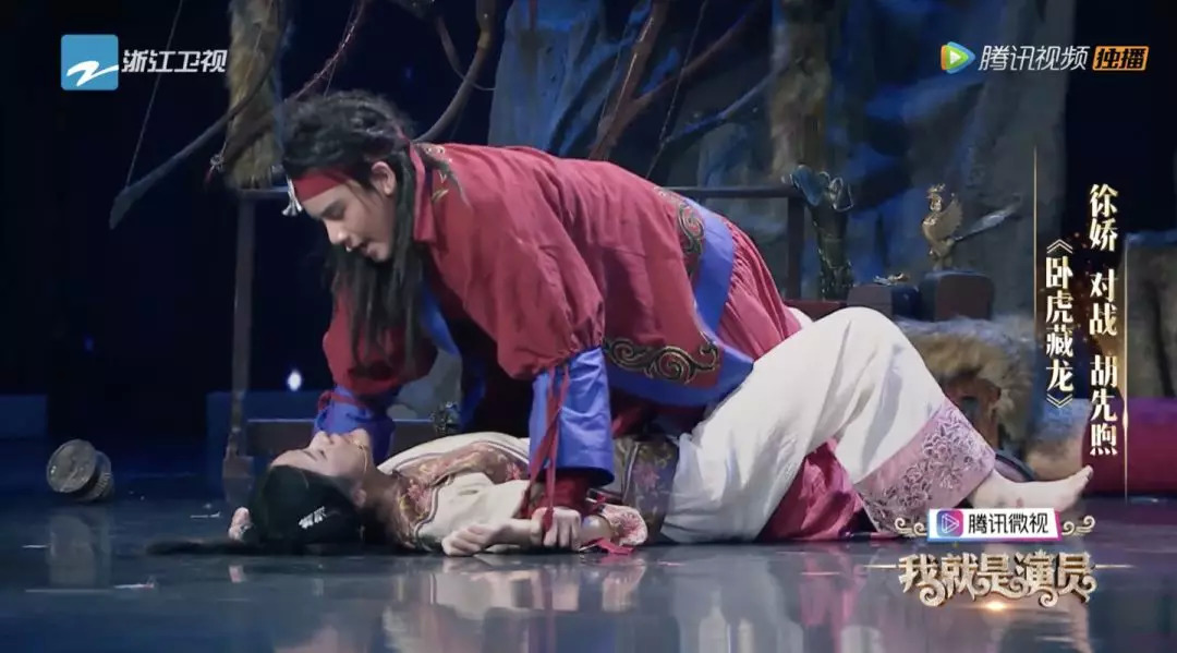 第一组选手就是青年演员,徐娇对胡先煦,演的是《卧虎藏龙》中罗小虎初见玉娇龙生情的片段。