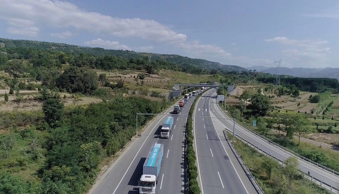 21. 三国车队从霍尔果斯口岸通关,进入哈萨克斯坦。