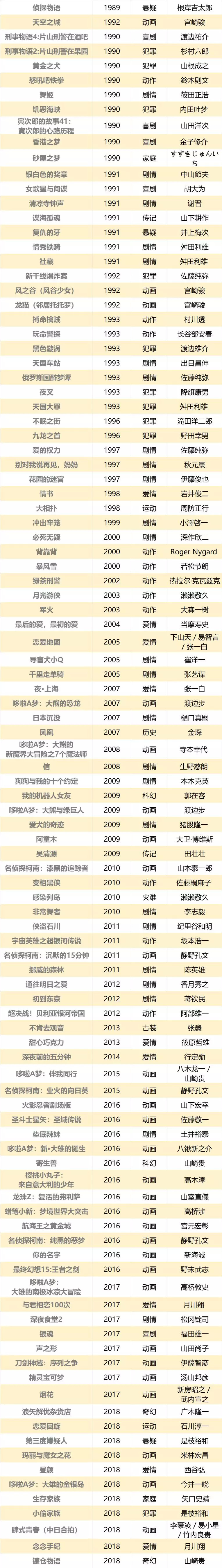 从上表可以看到,在68年里,共有202部日本电影被引进(统计截止2018年9月)。