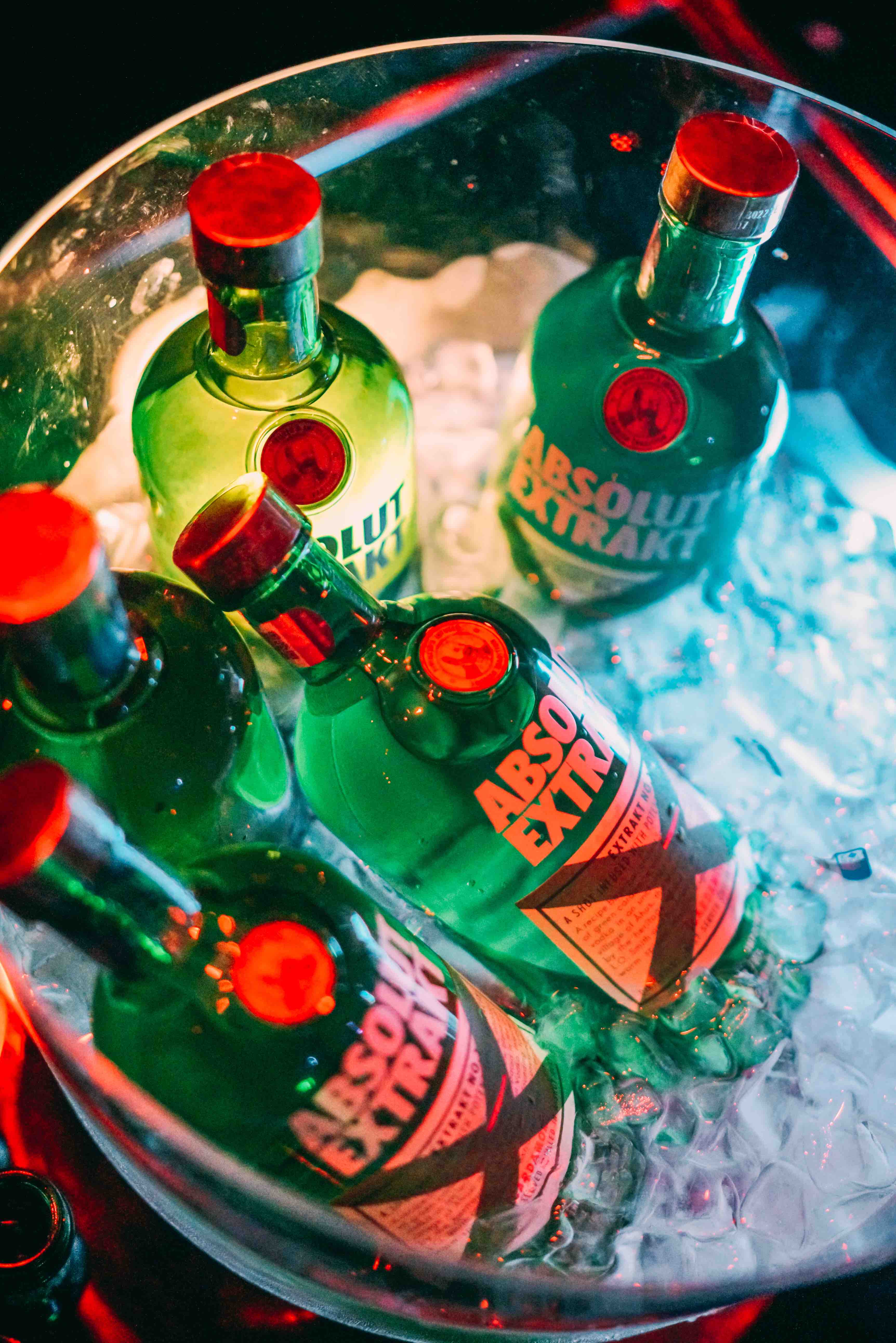 而平日是禁酒令风格酒吧的Bar Flow则变成绿植主题,内部用绿豆蔻等植物装饰成工业风混合自然实验室风格的空间。这同样是为了吻合绝对伏特加今年的新产品“Absolut EXTRAKT”,一款混合了绿豆蔻,并可以直接用shot杯(1个shot约30毫升)直接饮用、无需调配的产品。