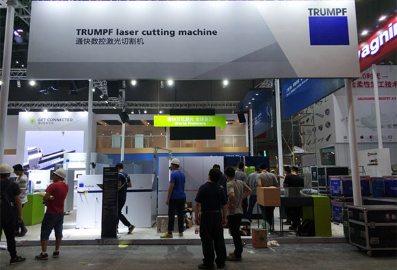 通快的TruLaser 5040 fiber切割机将在此次工博会全球首发,该产品在公司位于德国的总部完成研发,是通快万瓦级切割机首次在中国展会亮相。展台负责人介绍称,万瓦级的高功率产品能显著提升切削金属的厚度及速度,它能轻而易举地加工4厘米厚的不锈钢。
