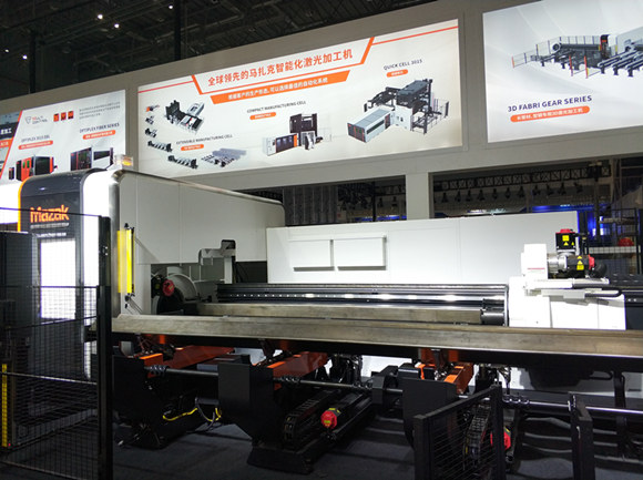 此次工博会上,山崎马扎克也带来了重量级展品。一款长度约为22米的3D激光加工机摆放其展台正中,它能一站式加工各类金属管材,并完成为建材雕刻花纹等高难度的工序。这也是该型号装备首次在国内展会亮相,它曾荣获第47届“日本经济产业大臣奖”,代表着行业内的最高水平。