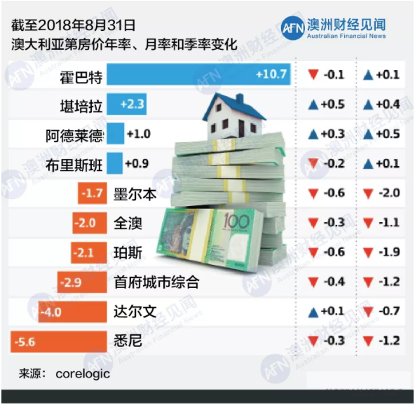 澳大利亚权威房产机构CoreLogic提供的数据显示,截至8月31日,全澳范围内房价已经同比下跌2.0%,悉尼跌幅更是达到了5.6%。