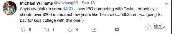 (有人买入蔚来么,新的IPO,与特斯拉竞争。未来几年股价有希望像特斯拉一样上到200美金,6.25美金买入的,看来未来孩子大学学费有着落了)