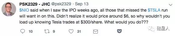 (几周前看到蔚来汽车IPO消息时候,所有人都说如果错过了特斯拉的股价飙涨你一定会想要买入这个。当时没有意识到价格只在6美金左右,所以如果你知道特斯拉现在在每股300美金,为什么不满仓买入?不然你想干什么?)