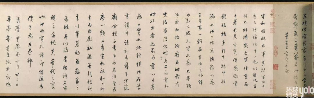 及至1860的第二次鸦片战争,英法联军攻陷北京,圆明园遭洗劫,皇城亦受波及,留在清内府100余年的《行穰帖》由宫内流出,流落民间。(《行穰帖》系由宫内流出,同时流出的还有钟繇《荐季直表》和苏轼《黄州寒食帖》等,并非被列强抢走,联军表示,请不要把所有流失文物的锅都扣在我们头上!)