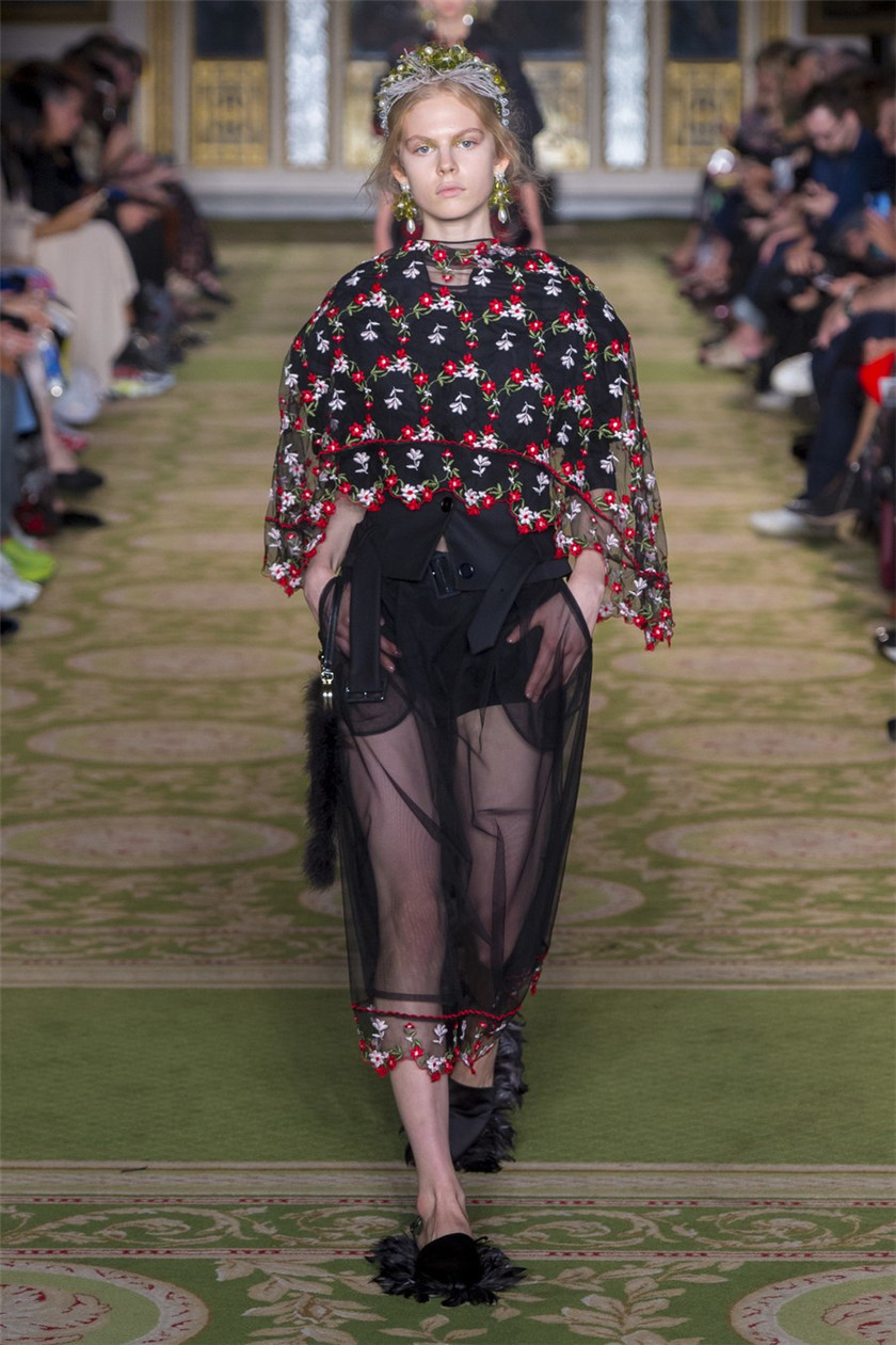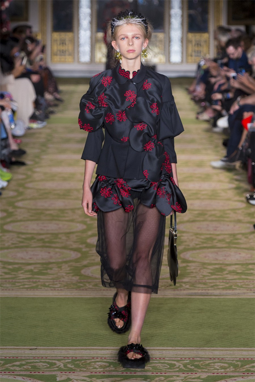 与此同时,带来怀旧香港风的Simone Rocha也用到了这种半透明的薄纱元素。在以往的认知中,购买薄纱裙的时候很重要的一点就是需要比较厚或者是比较多层的材质,以防止走光带来的尴尬。