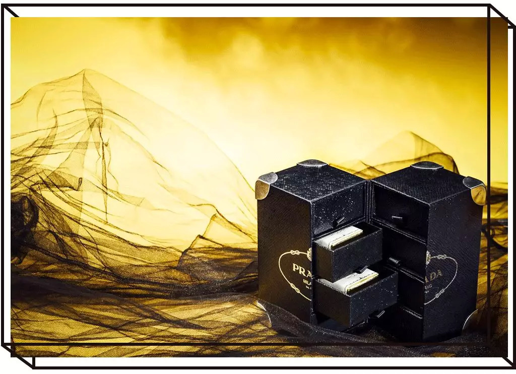 PRADA的月饼盒很像一个小皮箱,设计灵感和他家的包包分不开。材质和PRADA经典的杀手包皮质相似,四角的金属包边又取材于Cahier包包