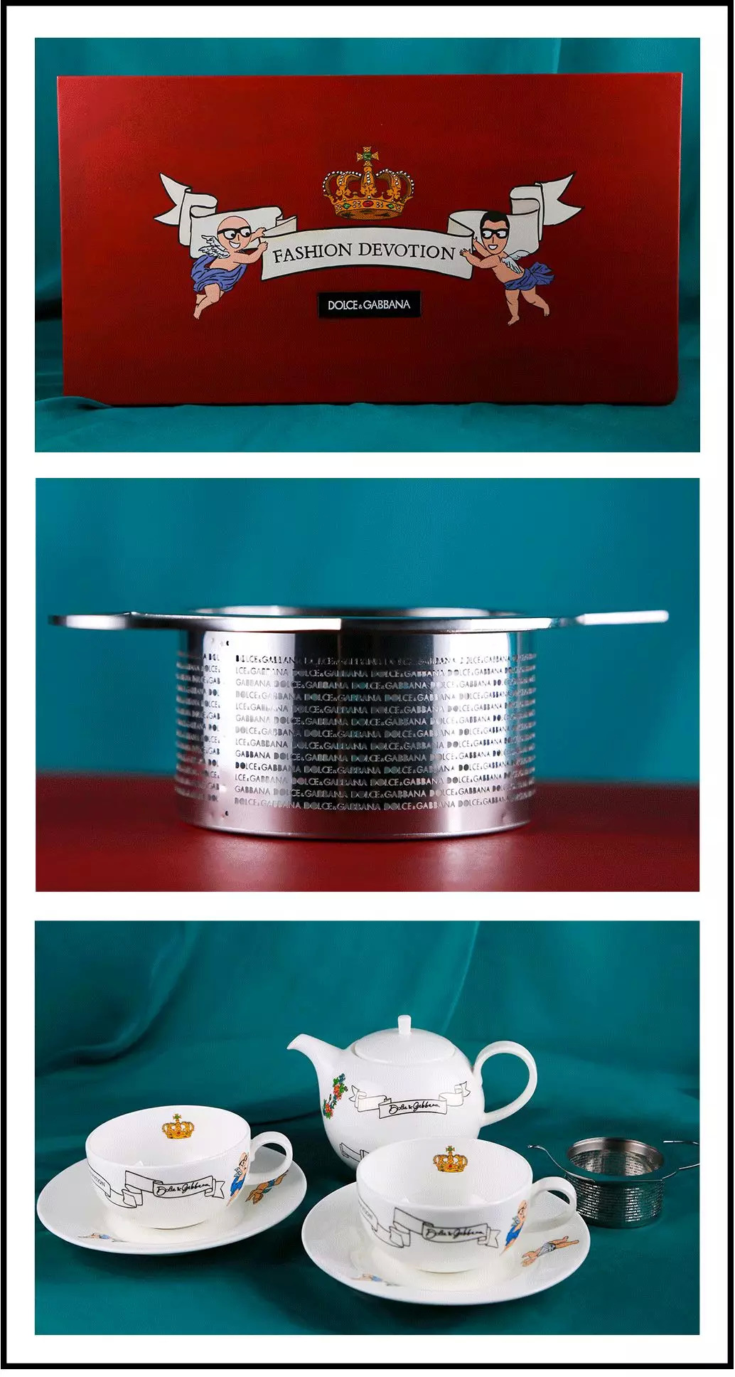 其实除了这些可以吃的月饼礼盒,还有的礼盒什么吃的都没有……比如Dolce&Gabbana的中秋礼盒,全是茶具,不过细节处做工很用心,连茶漏的窟窿都是他家的名字字母,也是独有特色呢