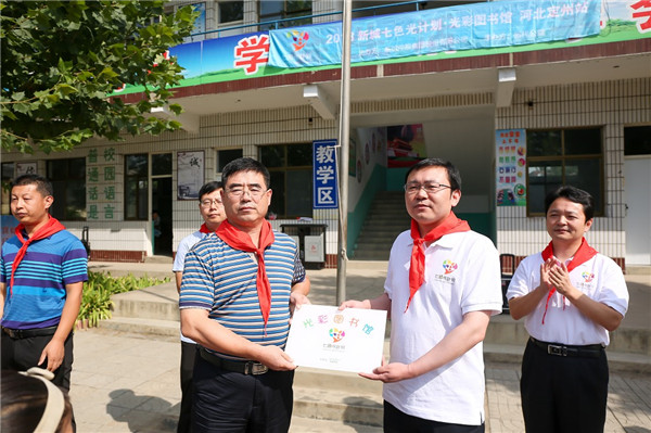 9月17日上午,新城控股2018七色光计划“光彩图书馆•河北定州站”启动仪式在南角羊小学盛大举行。新城控股集团党委副书记曹文伟先生、新城控股住开天津公司副总经理李亮先生、新城内部员工志愿者以及多家媒体共同见证了“七色光计划•光彩图书馆”在南角羊小学的落地生根。
