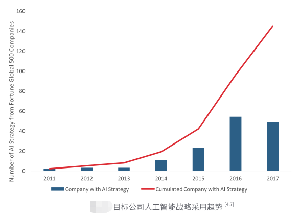 2011-2017年采用人工智能战略的公司年均增长率为91.9%。