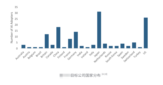 在来自22个国家并采用人工智能战略的145家公司中,31家位于日本,26家在美国,有18家在中国。