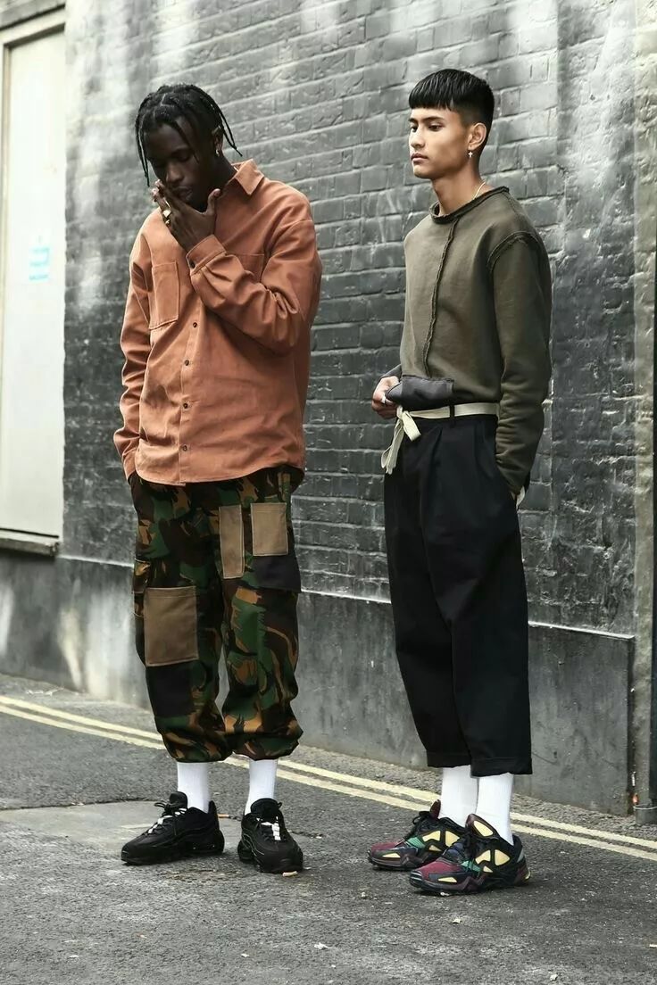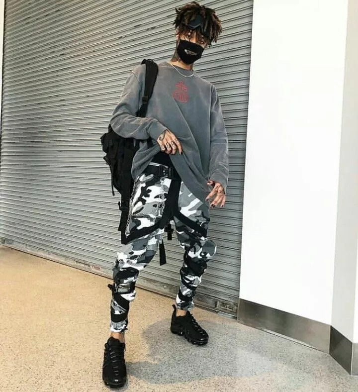 背带裤和直筒迷彩裤也是个不错的选择,会有一种街头复古少年的感觉,搭配一件卫衣就很出色了。