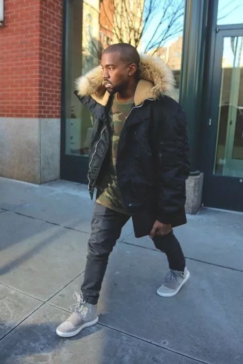 迷彩裤子永远是街头少年的爱,只要随便搭一件T恤就可以很酷的出门啦。你可以看到侃爷的很多造型都是这样完成的。