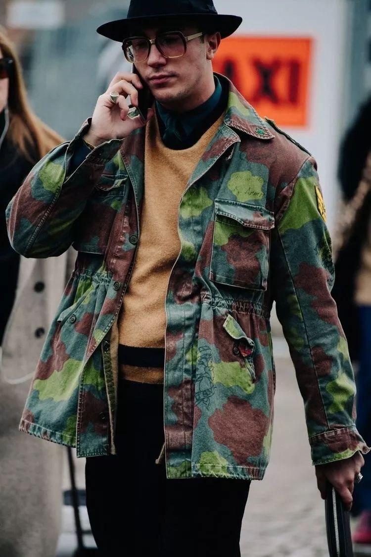 迷彩元素最神奇的一点就是,跟任何单品都能和谐共处,并且在街拍中常年占据出现频率的高点。