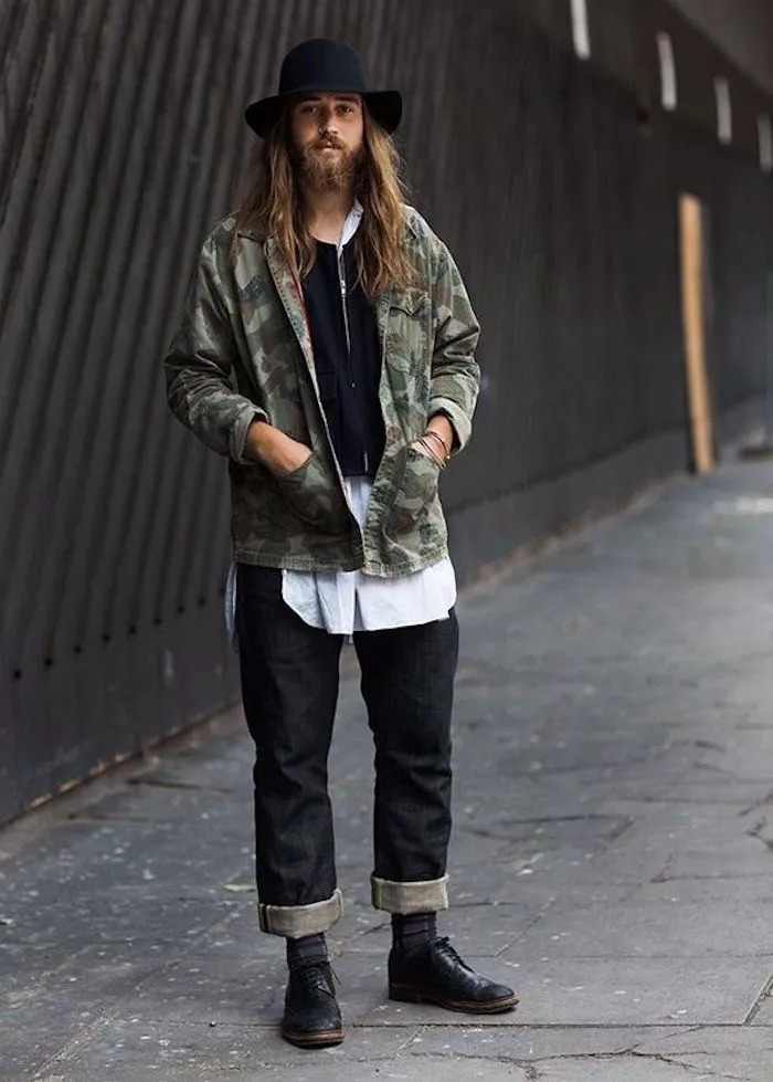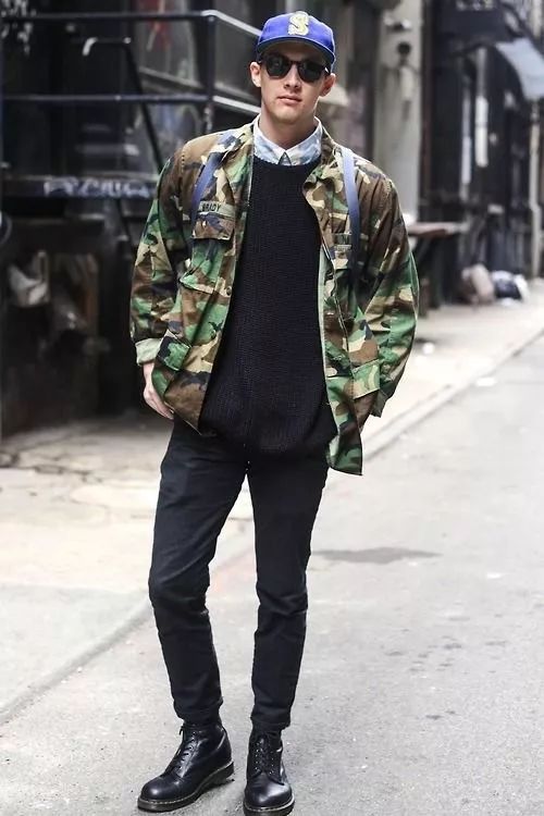 迷彩这样的元素最适合扮酷,想要变身街头酷男孩,你还需要一件迷彩夹克。最好是工装夹克款的。