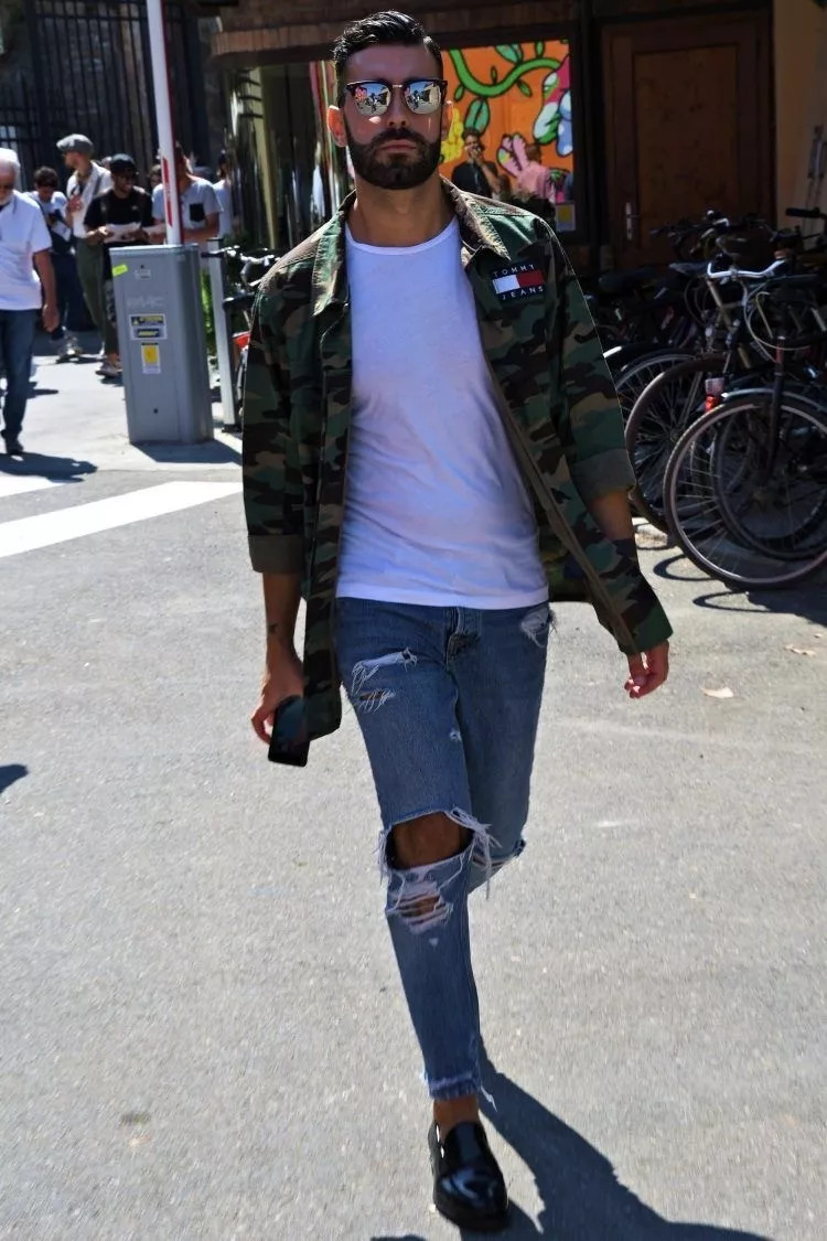 总能看到形形色色的潮流人士,穿着迷彩单品出镜的照片。无论是裤子、卫衣、夹克、大衣、甚至是羽绒服,一年四季迷彩似乎永不停歇。你要做的就是选择一款适合你的单品,然后用迷彩来装点它。