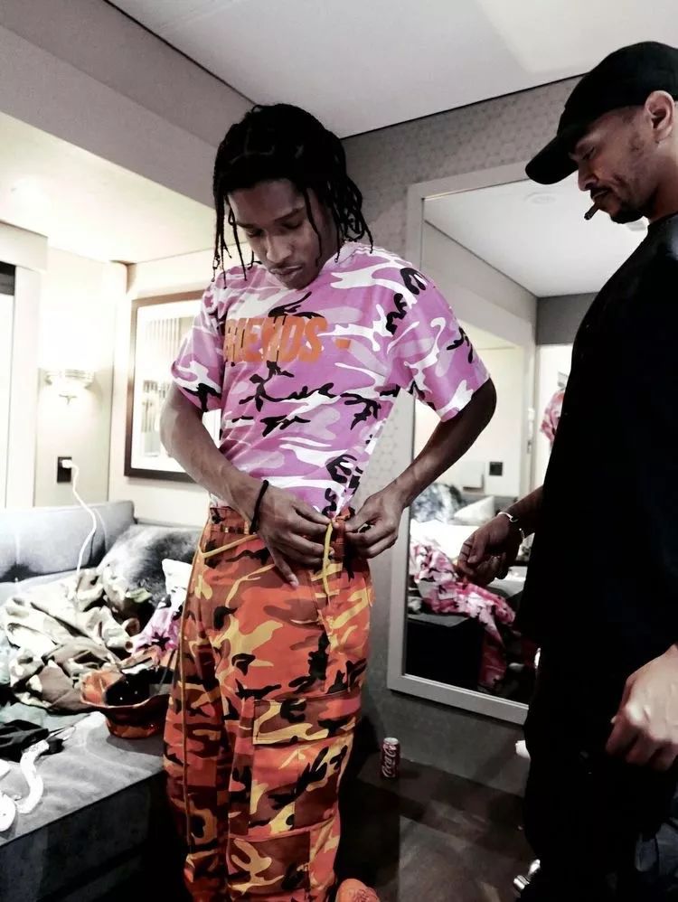 其他rapper们自然也不甘示弱,不但玩起了迷彩叠穿,还选择了很多不同颜色的迷彩。