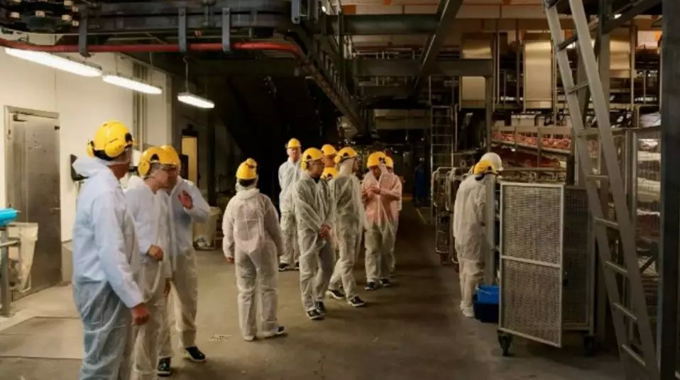 加工厂是对外开放的,但是对前来参观学习的人要求很高,需要穿上统一的无菌服,要是有没刮胡子的男人,还会被要求带上一次性口罩。