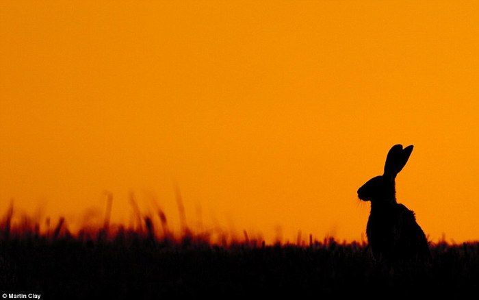 3. 黄昏时分,在汉普郡Longparish村里,一只兔子似乎正在沉思。