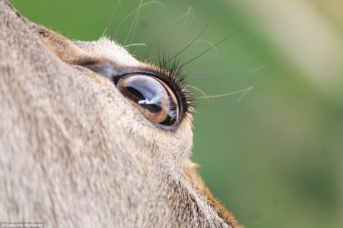 5. 摄影师Caroline McHardy近镜拍摄一只鹿的眼睛。它的眼里好像映出了一片天空。