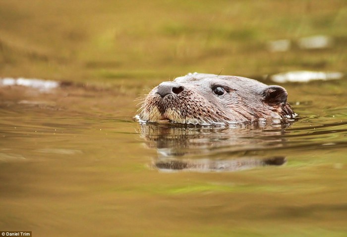 6. 贝德福德郡,一只水獭在湖面窥探。