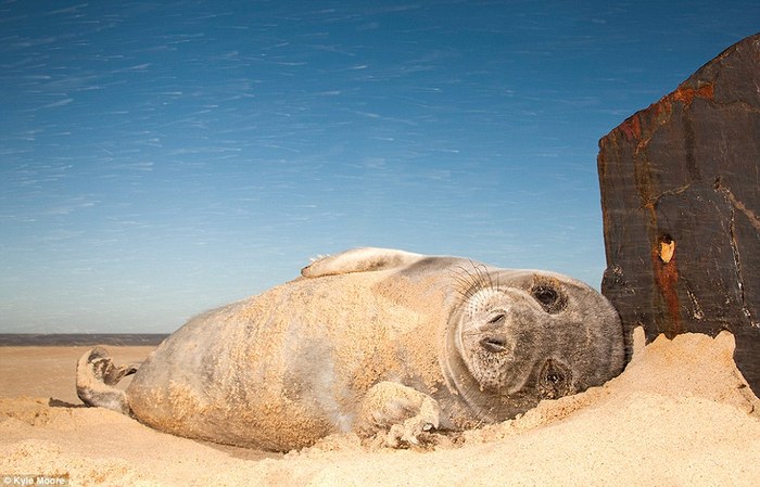 11. 一只海豹懒懒地在沙滩晒着日光浴。