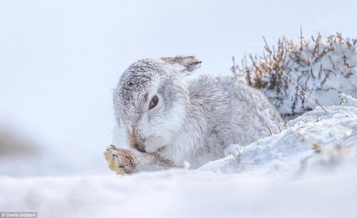 19. Cairngorm国家公园的皑皑白雪中,一只雪兔眼神凌厉。