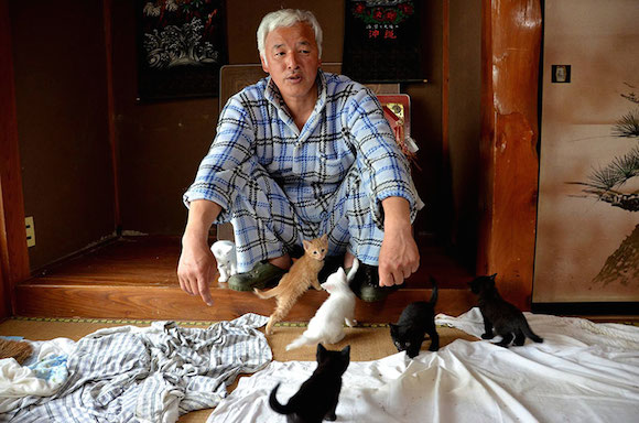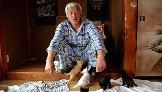 但55岁老人松村直登没有忘记它们。这个建筑工人曾一度撤离辐射区,后来又回到了双叶郡富冈町没水没电的家中,照顾那些主人们拒绝宰杀的牛、猫、狗、猪。这里距离福岛第一核电站只有12.5公里,曾经是东北地区有名的赏樱胜地。